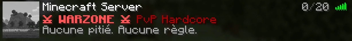 Ergebnis: ⚔ WARZONE ⚔ (rot fett) PvP Hardcore (dunkelrot) + Slogan in grau