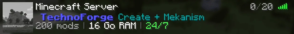 9. Modded Server motd=\u00A79\u00A7l TechnoForge \u00A7r\u00A73Create + Mekanism\n\u00A77200 Mods \u00A78| \u00A7f16 GB RAM \u00A78| \u00A7a24/7